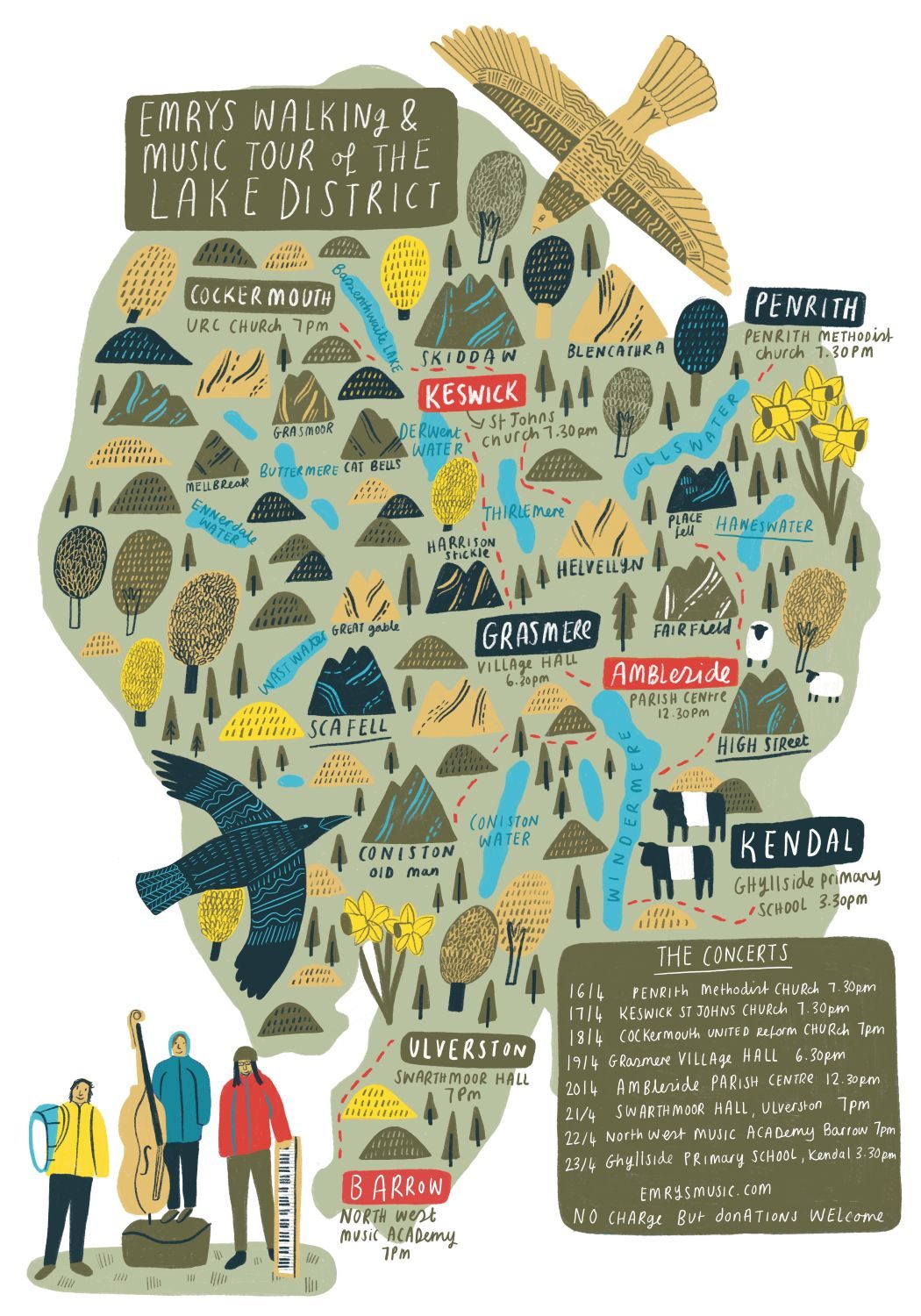 All concerts will be free to attend, with audiences invited to reserve tickets in advance or join on the door. A voluntary donation model will support the continuation of the project. In a further invitation to participation, the trio encourages audiences to join sections of the daily walks, fostering a shared experience of landscape and sound.