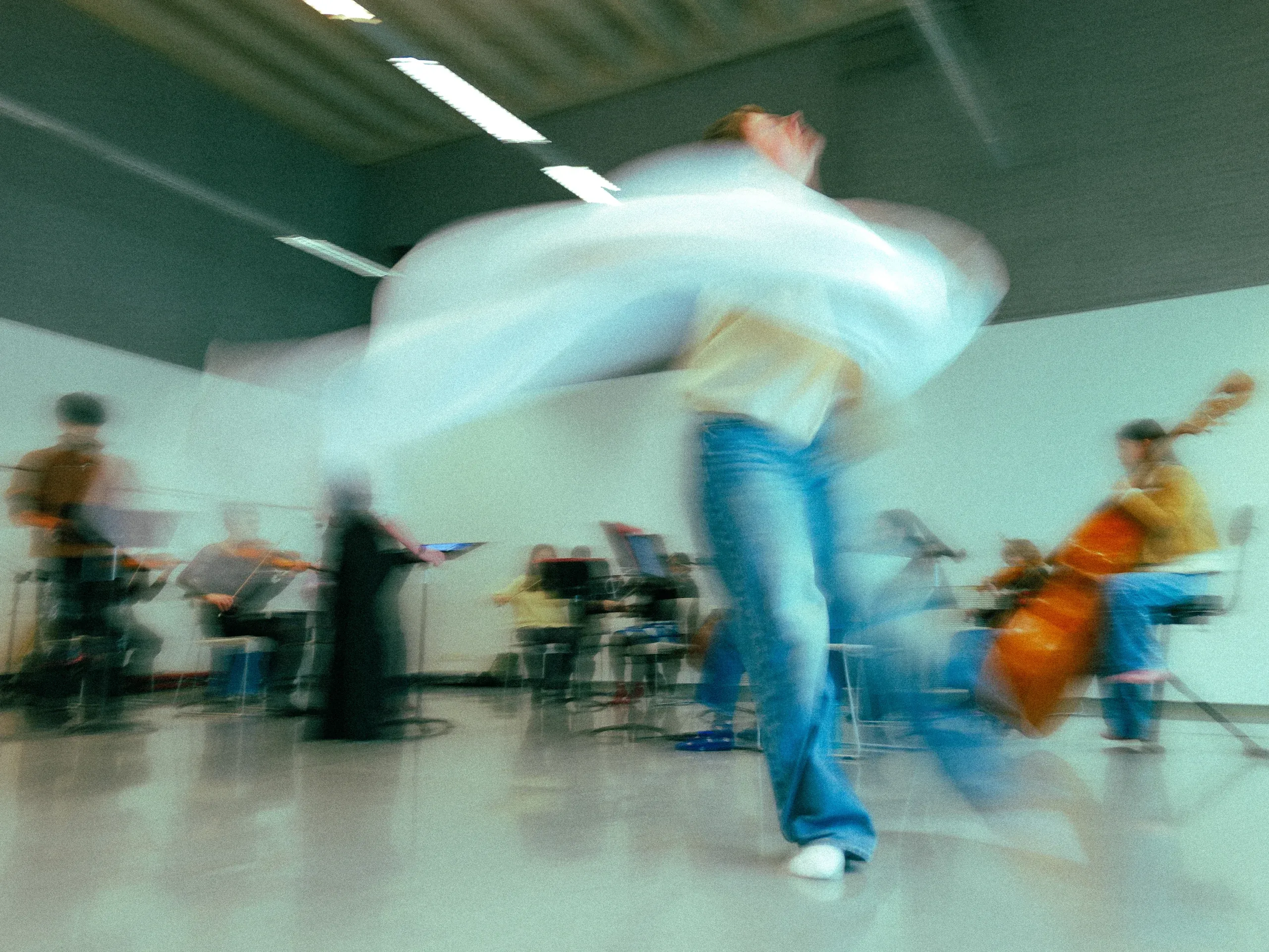 We welcomed leading international artists and institutions to work with us, including Boston Dance Theatre, led by contemporary dance alum Jessie Jeanne Stinnett. Jessie’s project, Creating Temporal Worlds through Movement and Sound, involved a collaborative exploration of movement and sound using her developed embodied practice of “duration” which emphasises time as fluid and incomplete. The USC Glorya Kaufman School of Dance returned to create four projects with our students, delving deep into the power of improvisation and cross-disciplinary performance. Our students joined forces with artists from Victoria College of the Arts, University of Melbourne, who created Passages, Memories & Milestones, a collaboration between musicians and dances exploring different dimensions of time – moving forward, moving backwards, and holding to the now. Honorary Fellow Peter Gn and his contemporary dance ensemble, The Presence Project, crafted a unique experience blending contemporary dance with a live percussion-led and electronic music soundscape, film, and spoken text, titled Fluid Mortals – Off-centre, a Little to the Left, and Holding Time.